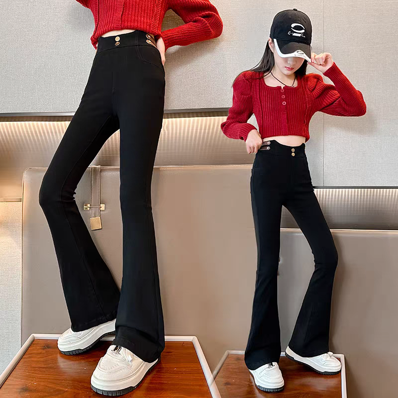 长裤 女童黑色弹力喇叭裤 中大童洋气时髦休闲修身 新款 子潮 2025秋季