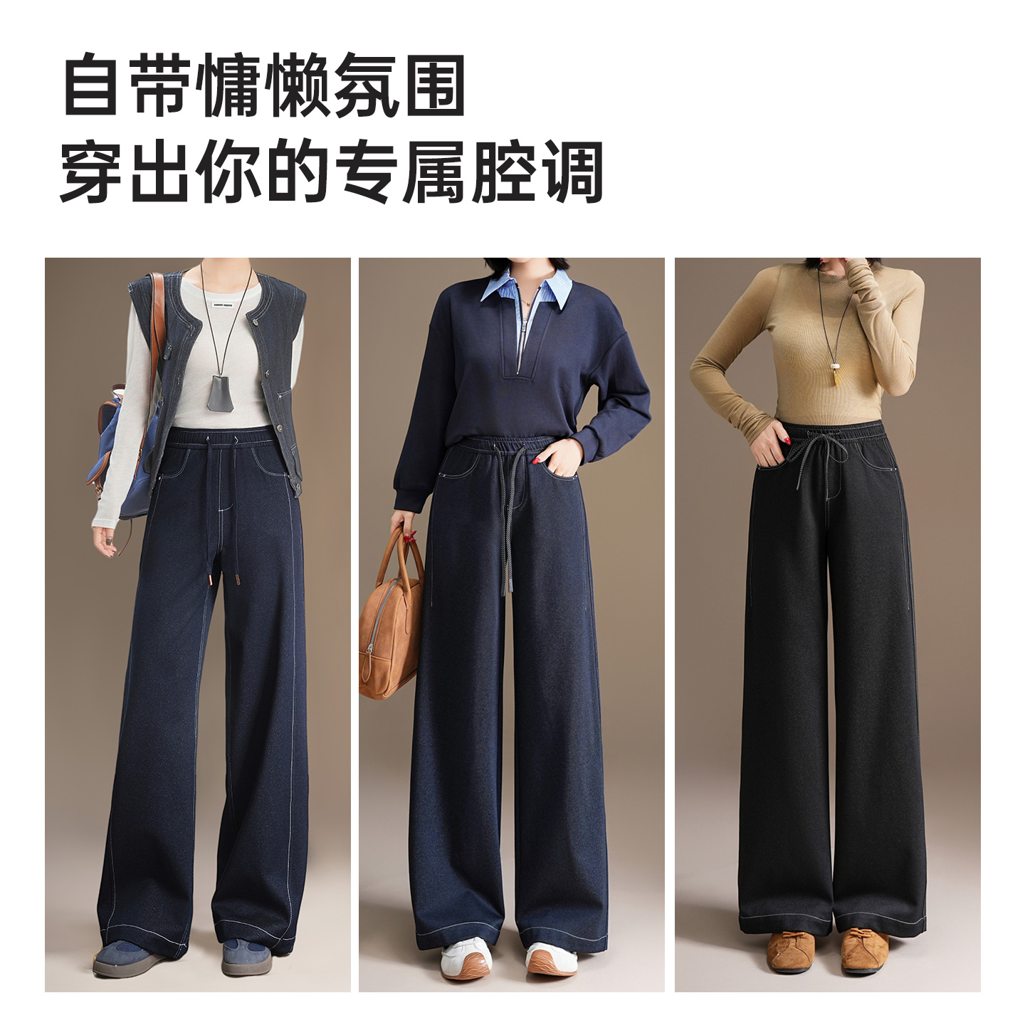 高级宽松bf慵懒垂感直筒加绒休闲阔腿裤 2025新款 子女春秋季 糯米裤