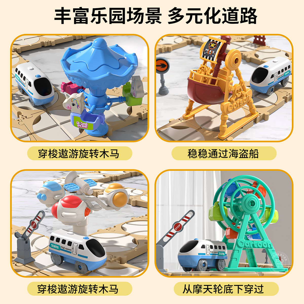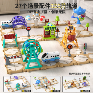 电动轨道积木DIY乐园拼图玩具2025新款 益智男女孩过家家早教礼物