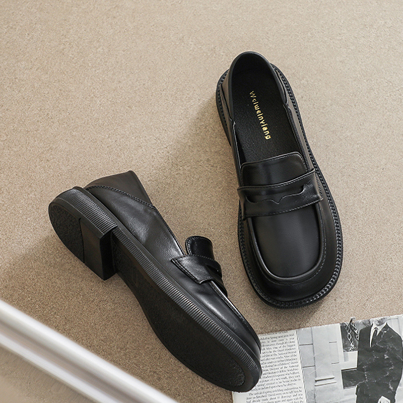 黑色平底单鞋 夏季 一脚蹬乐福鞋 女大码 英伦小皮鞋 女鞋 女2025新款