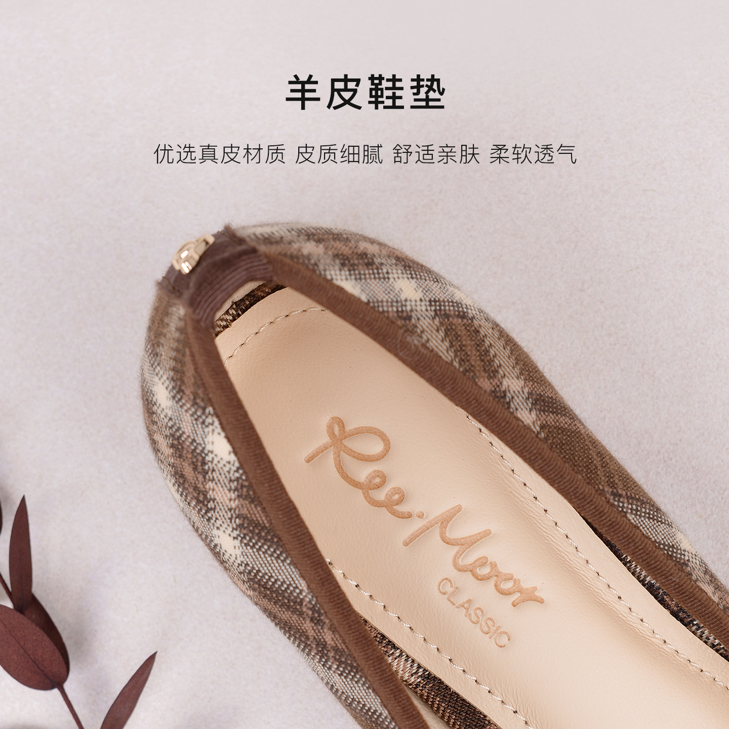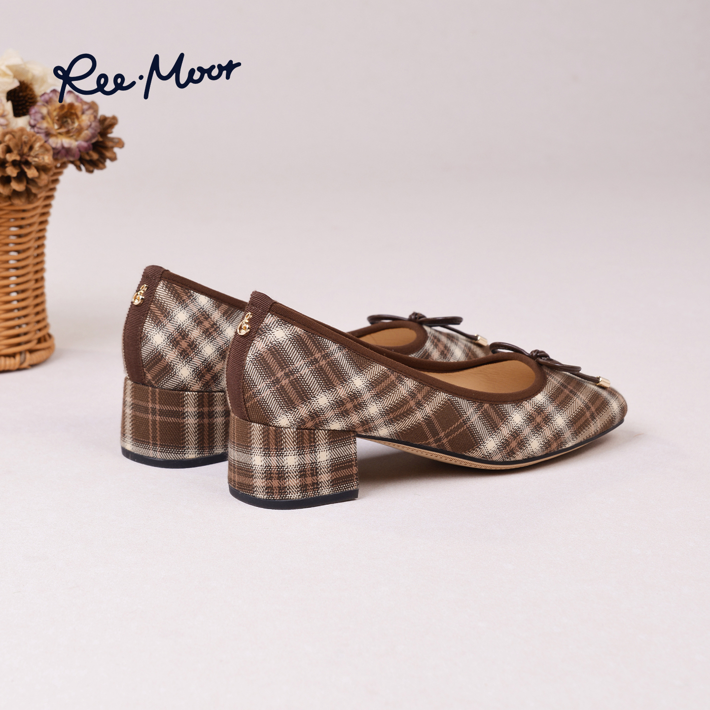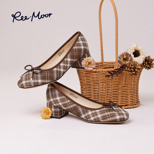 格纹芭蕾风舒适粗跟增高浅口单鞋 法式 女 新款 REEMOOR睿慕2025秋季