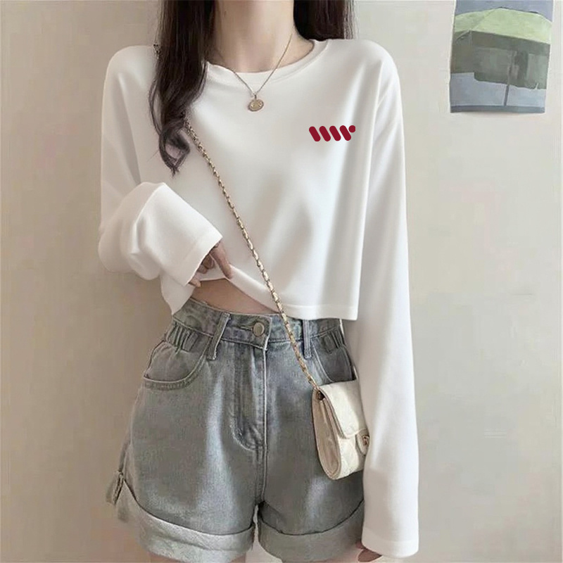 新款 t恤女宽松百搭高腰露脐2025春秋季 气质内搭打底 短款 白色长袖