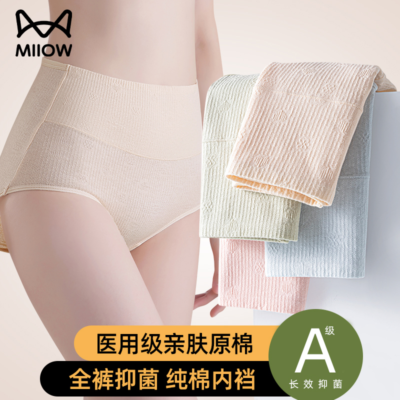 纯棉抗菌高腰加长裆亲肤三角内裤 MiiOW 猫人女士医用级类原棉内裤