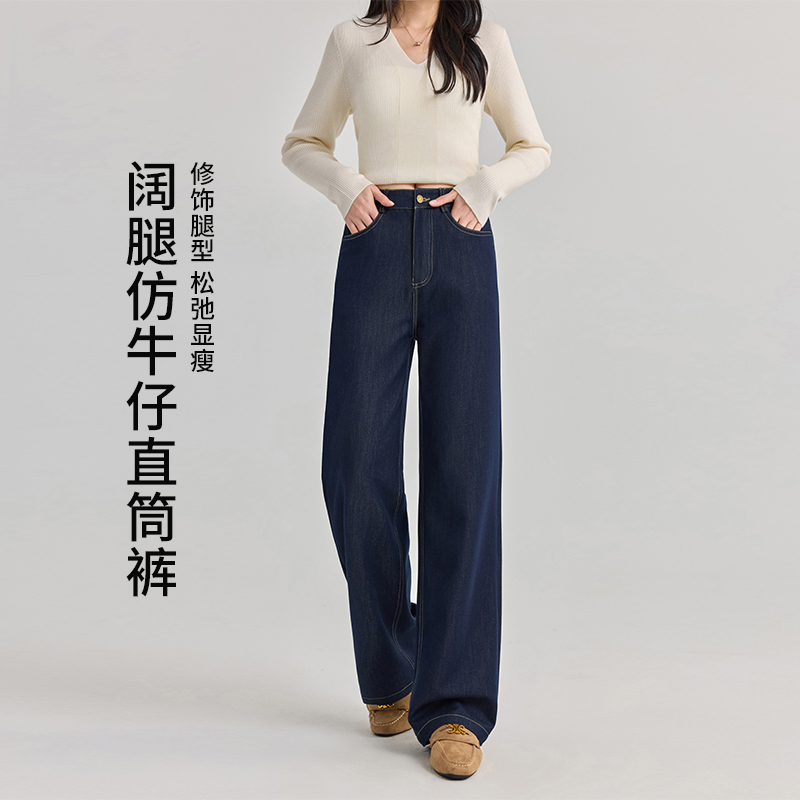 高腰宽松bf慵懒风直筒裤 2025新款 子 女秋季 韩妁雅复古阔腿牛仔裤