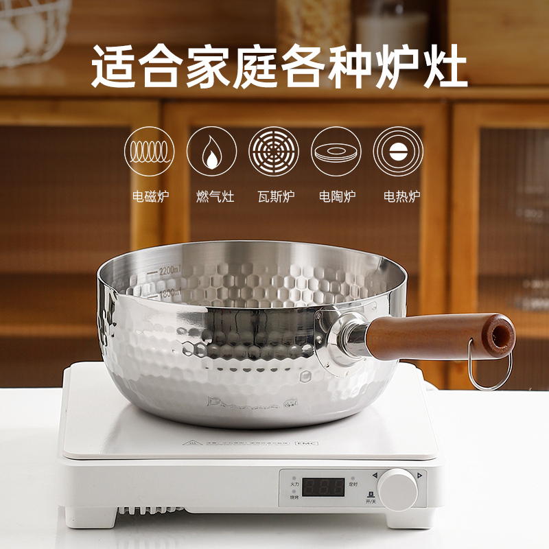 日本雪平锅无涂层316l小奶锅一人食小锅不锈钢家用宝宝泡面锅汤锅