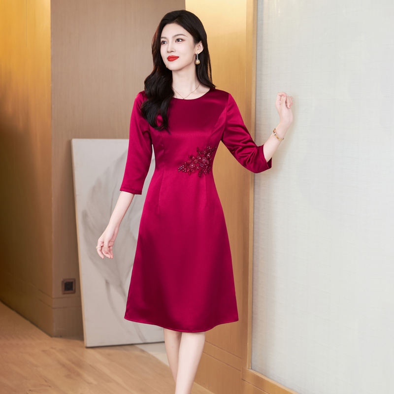 茗思高级感钉珠撞色连衣裙女2025早秋新款 裙子 气质宽松显瘦中长款
