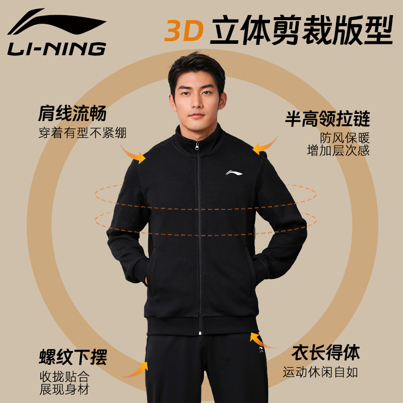 中老年秋季 长袖 爸爸2025新款 外套夹克长裤 三件套 套装 李宁运动套装