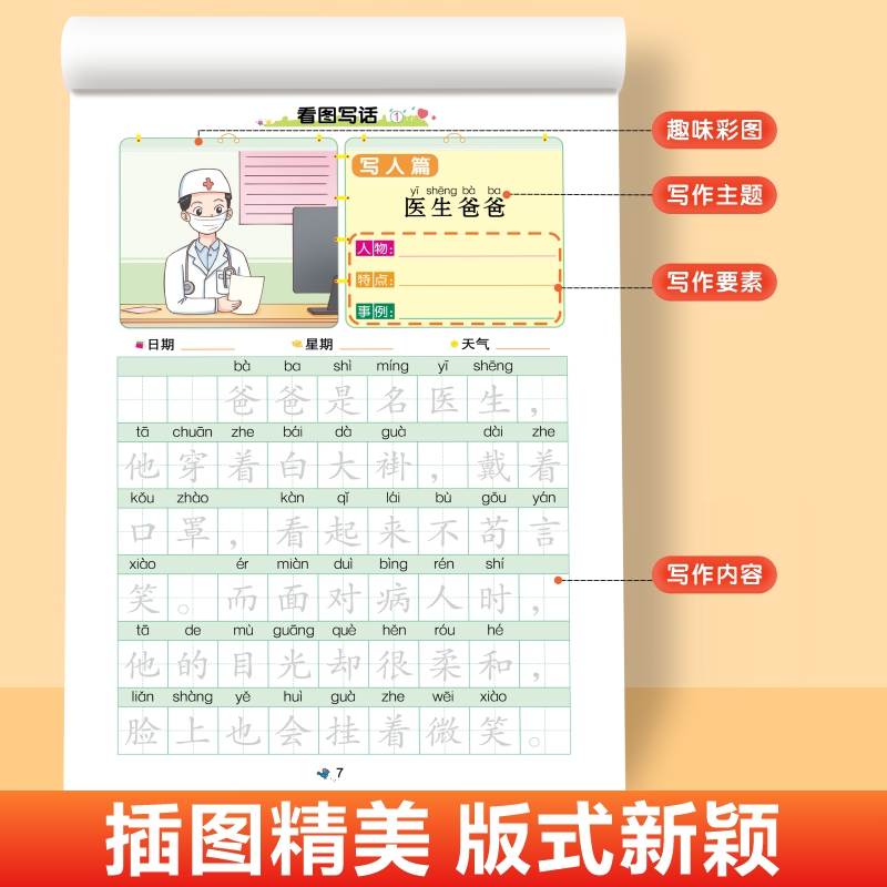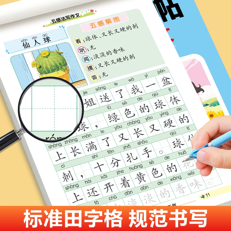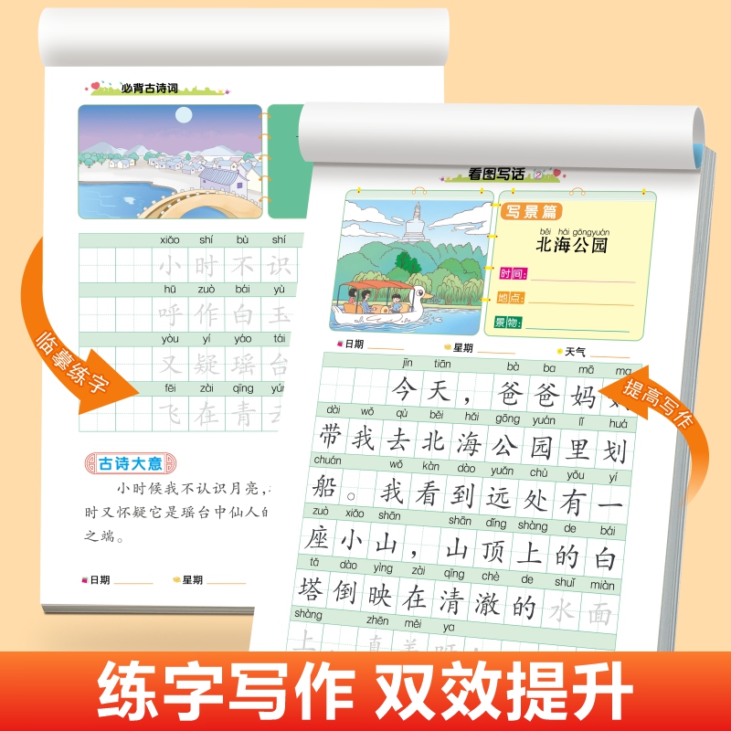 随堂练字帖一段话日记作文看图写话小学生古诗词常用成语通用英语好词好句好段扩句法五感法写作描红本一二年级写作素材积累书