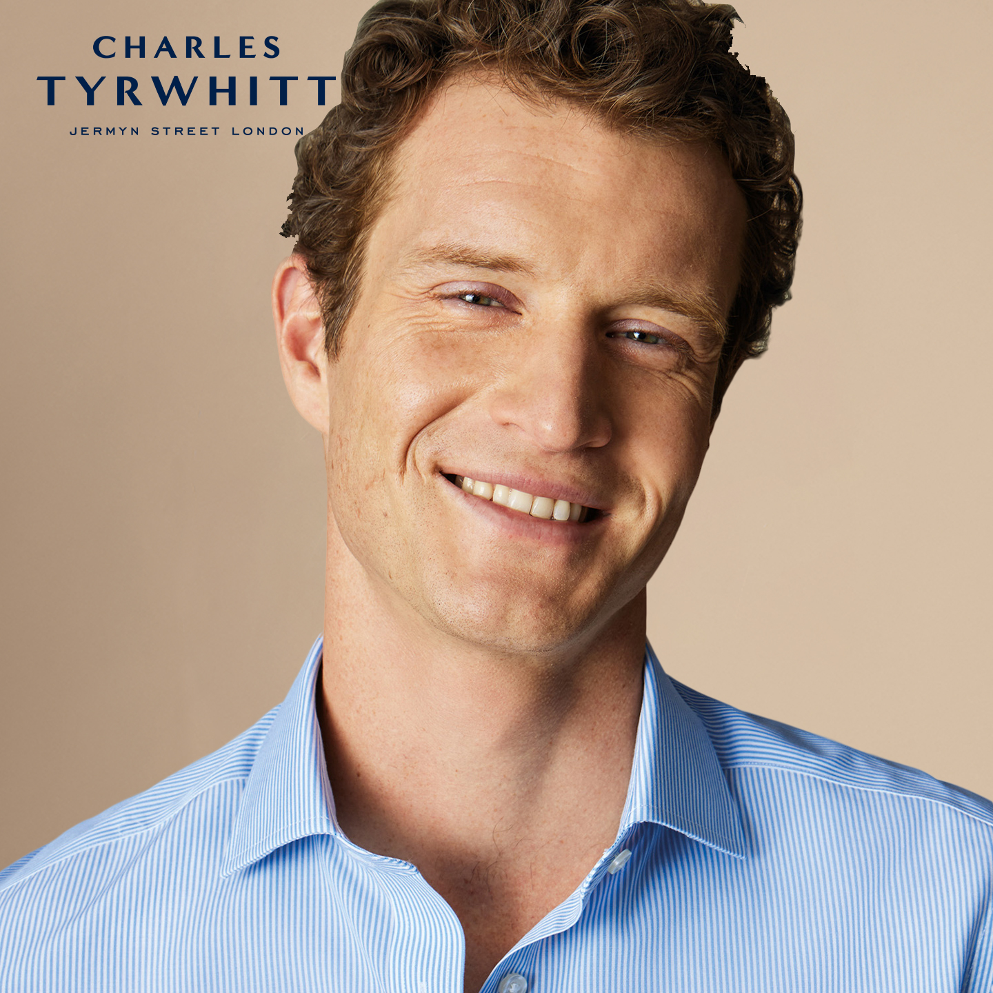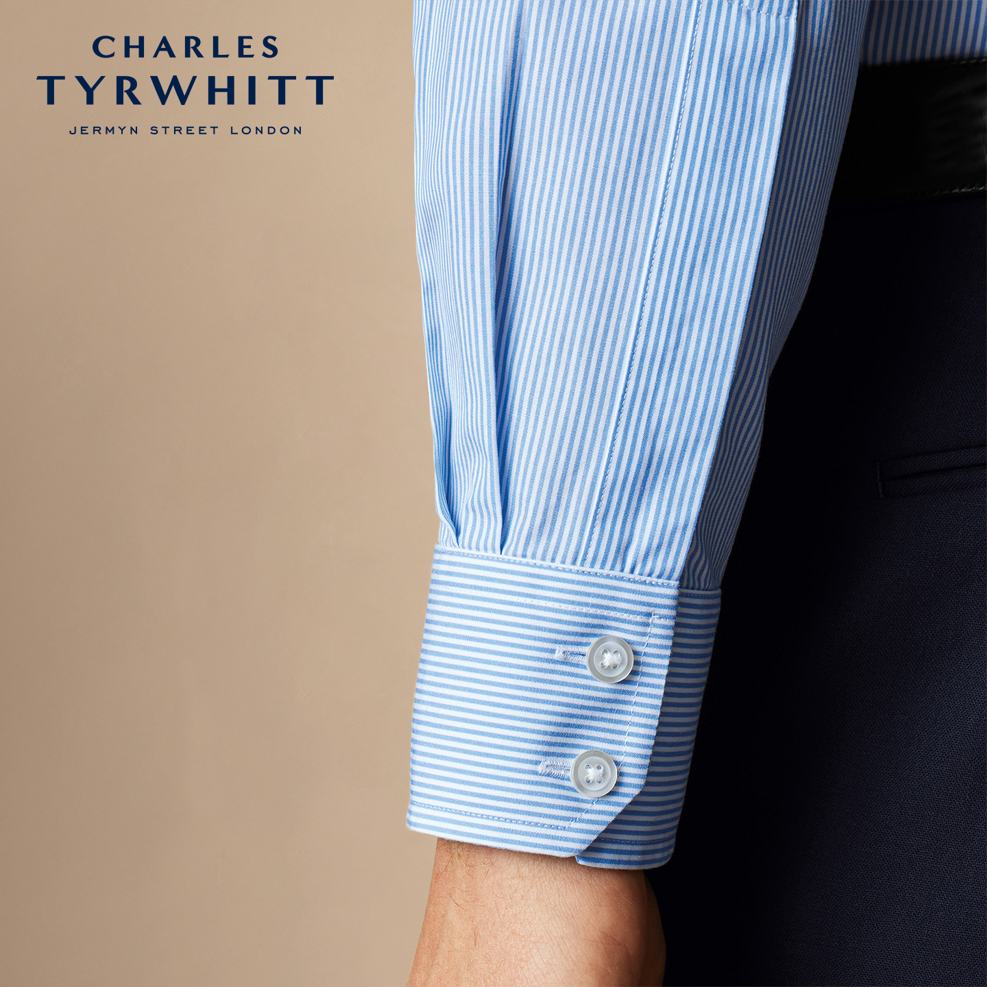 府绸衬衫 CHARLES 型温莎领矢车菊蓝条纹免烫正装 版 TYRWHITT修身