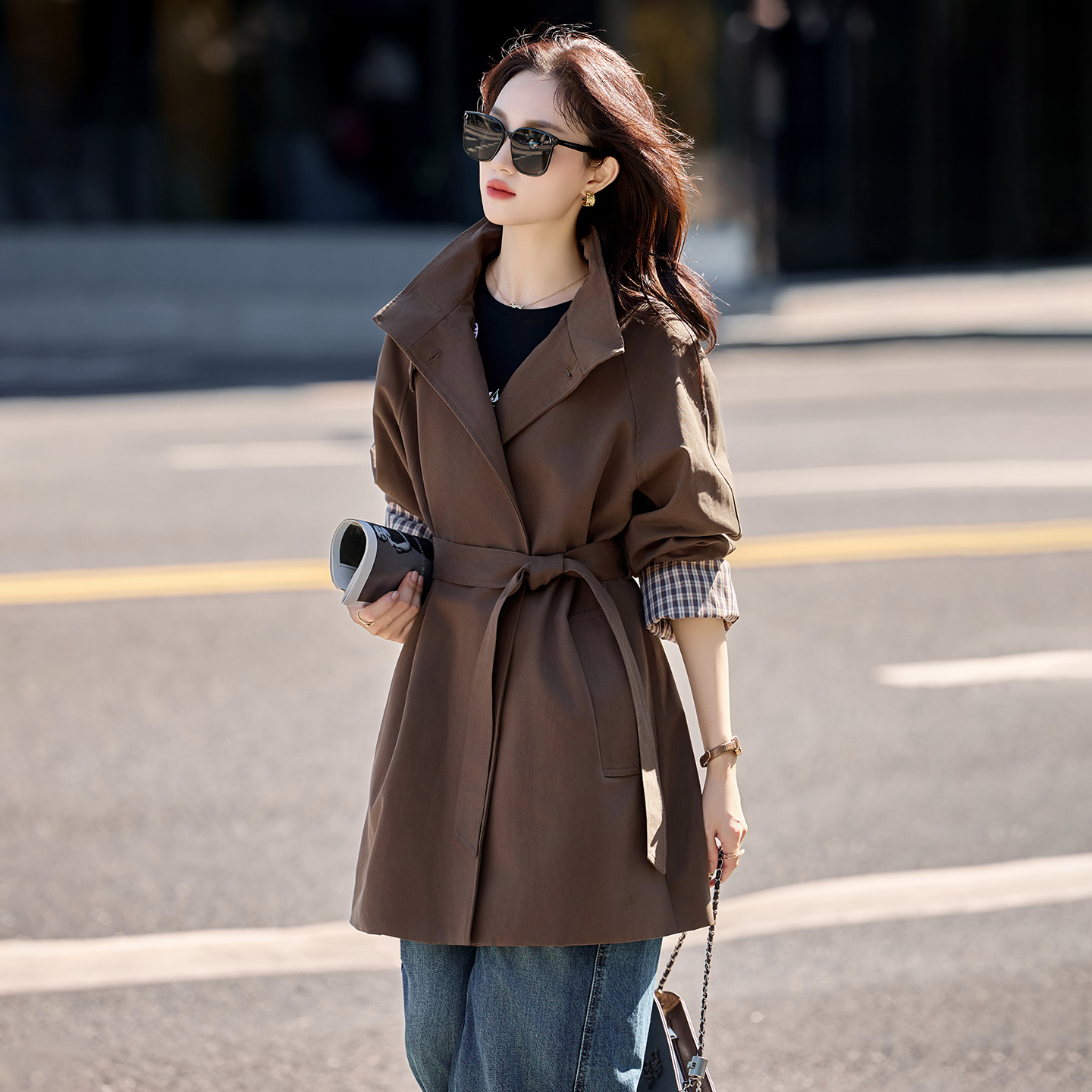 秋棕色气质秋季 小个子女款 立领上衣 风衣外套女中长款 2025巨好看