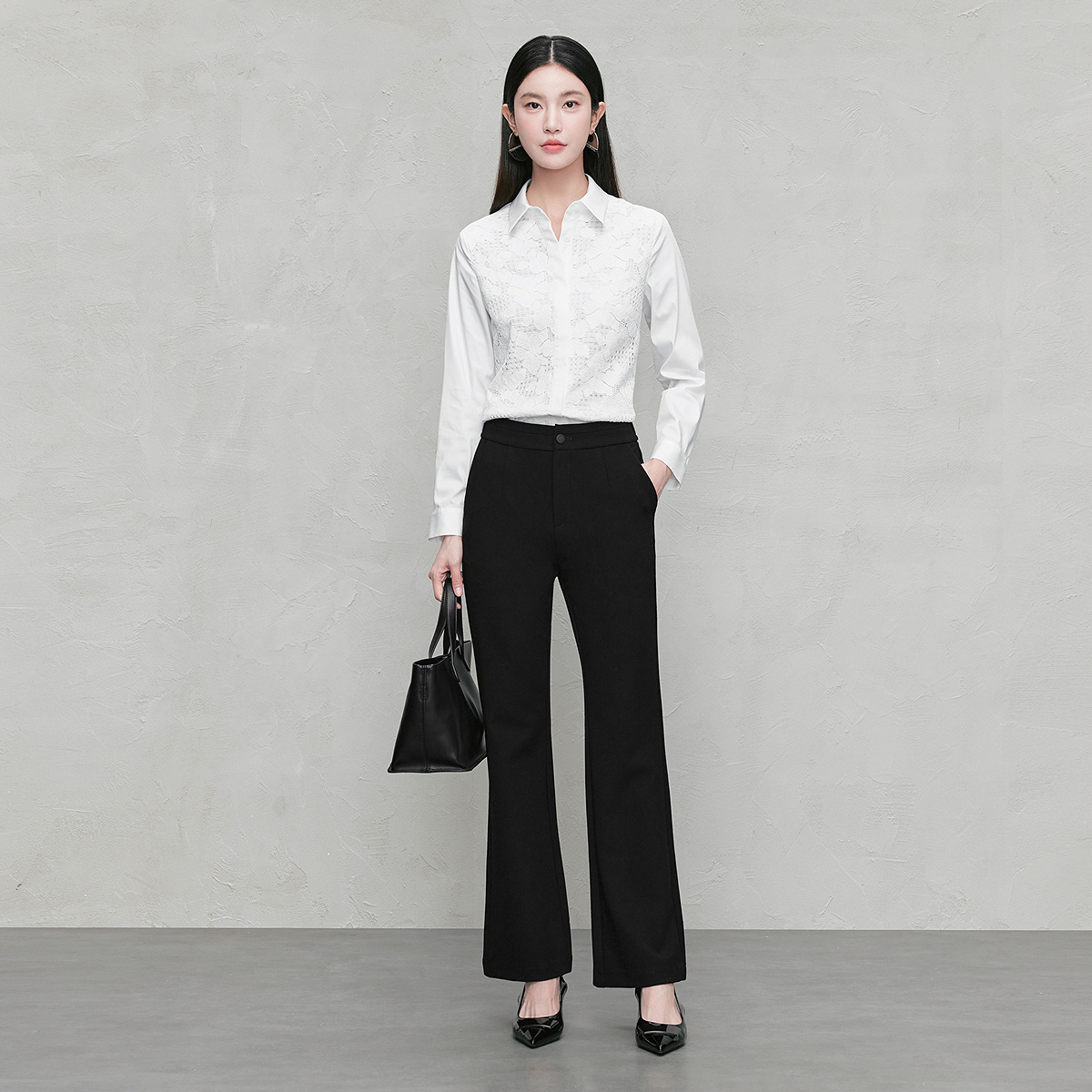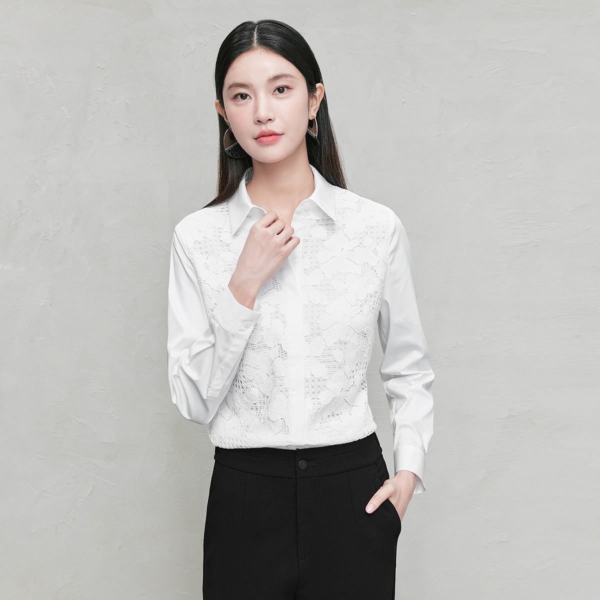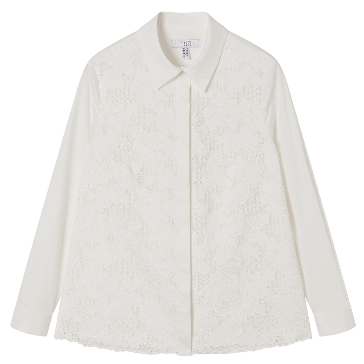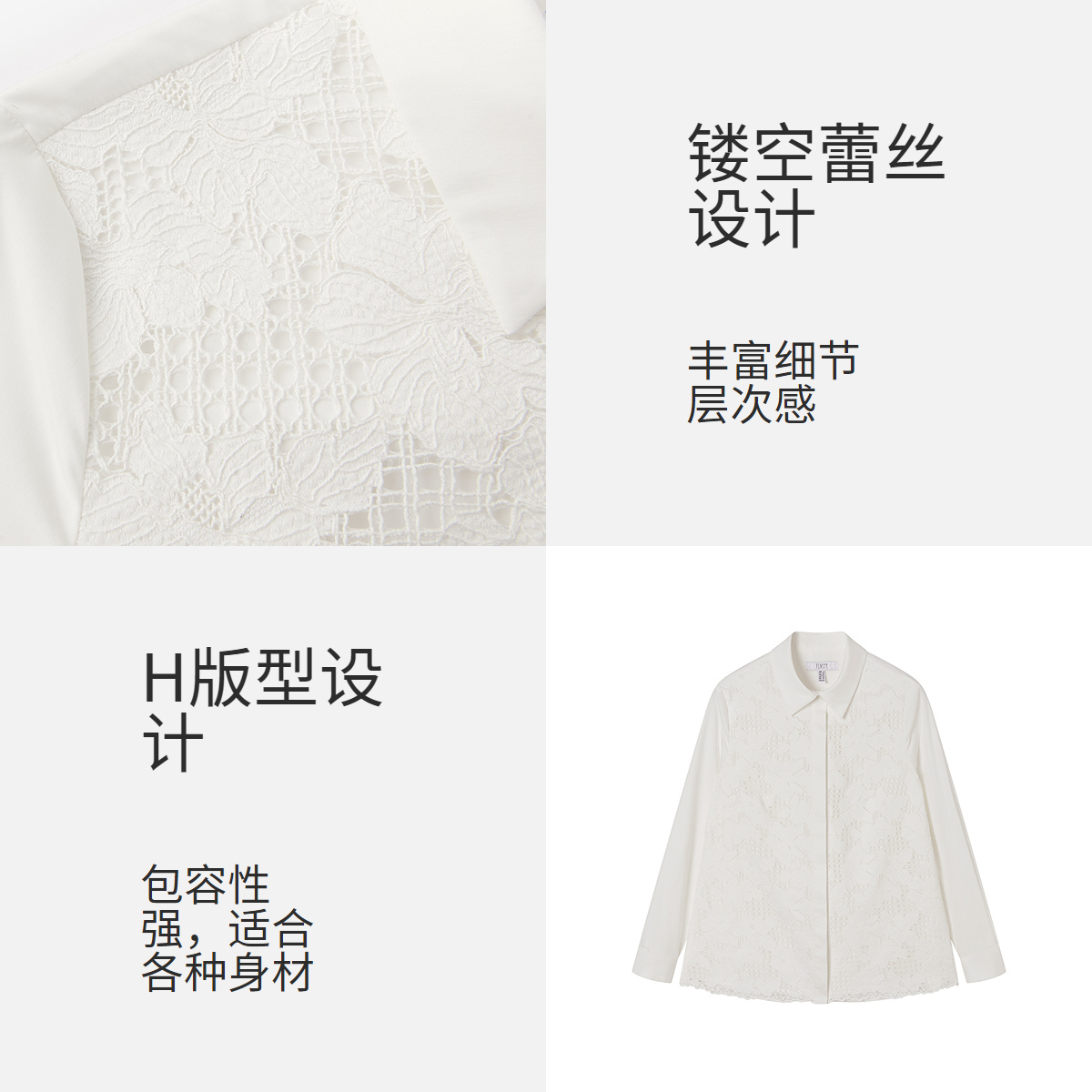 正肩通勤衬衣 新款 FINITY菲妮迪蕾丝镂空提花棉白衬衫 女2025年秋季
