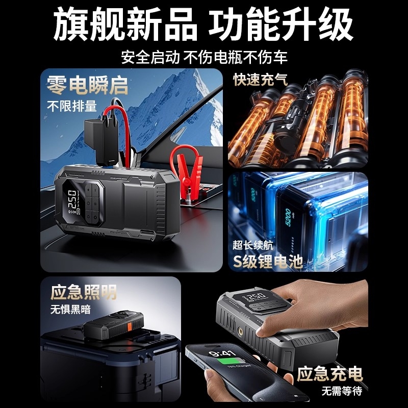 随途4合1无线应急启动充气泵三节电池高续航气泵打火一体储能电源