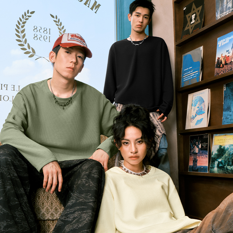长袖 体恤男大码 秋季 潮流阔版 重磅落肩华夫格t恤 美式 HG真维斯男士