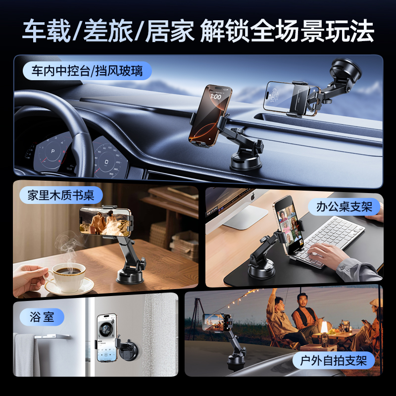 车载金属手机支架吸盘式 真空吸附汽车仪表台导航专用防抖2025新款