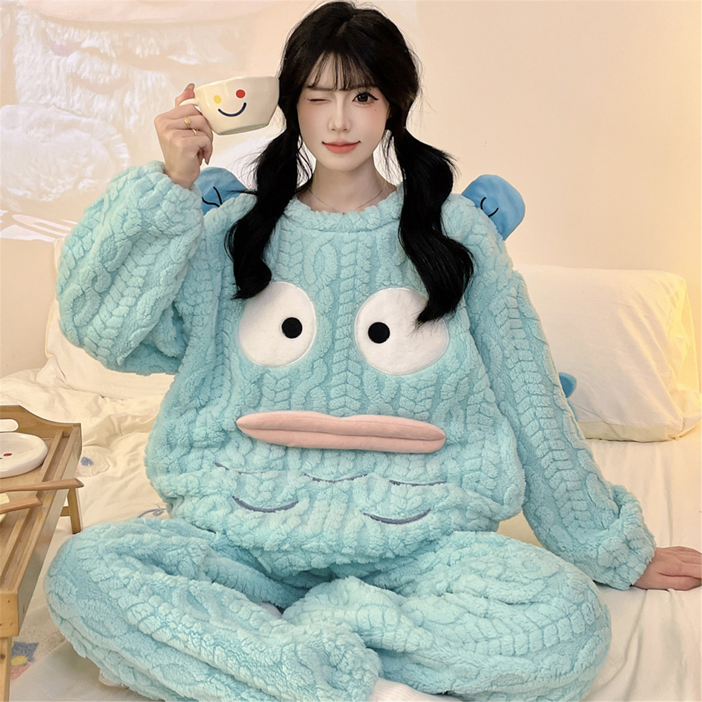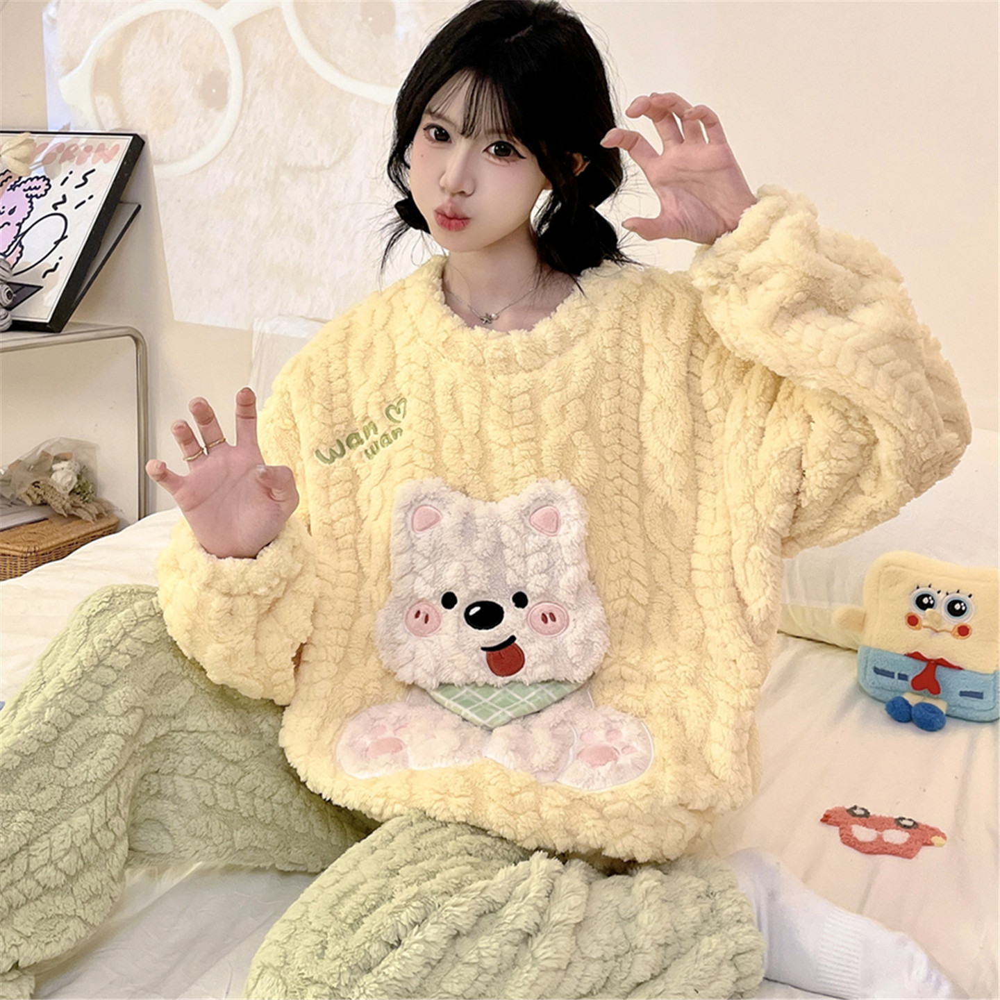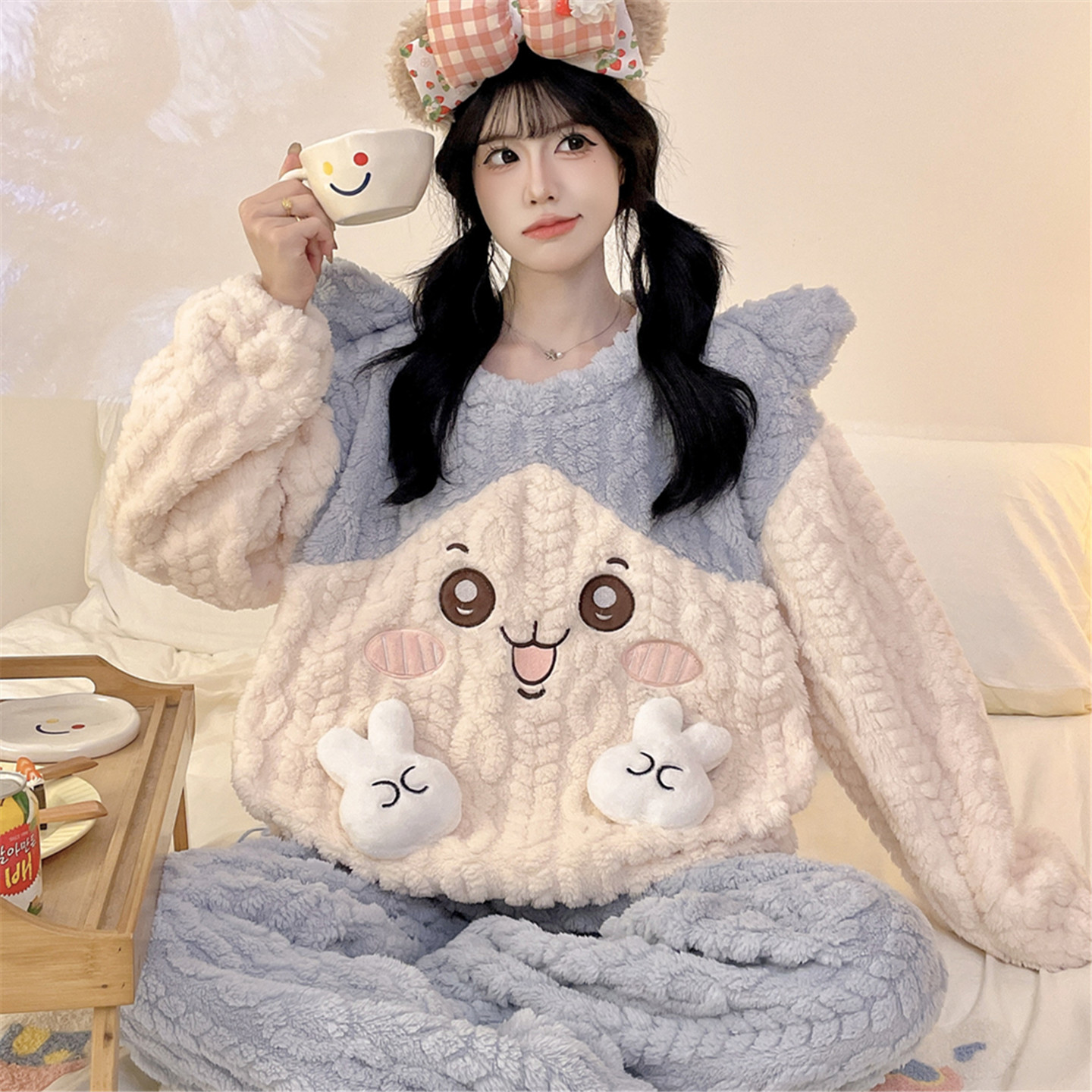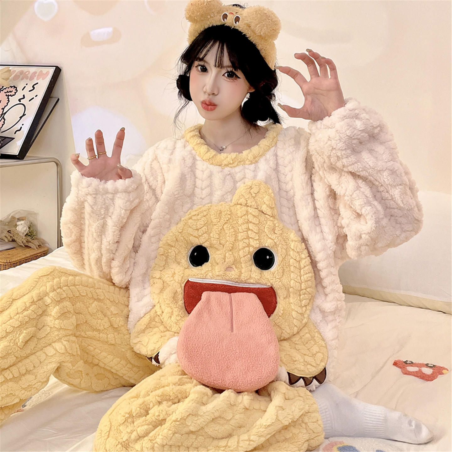 睡衣女生秋冬季 珊瑚绒加厚加绒大童女孩学生甜美卡通家居服12岁15