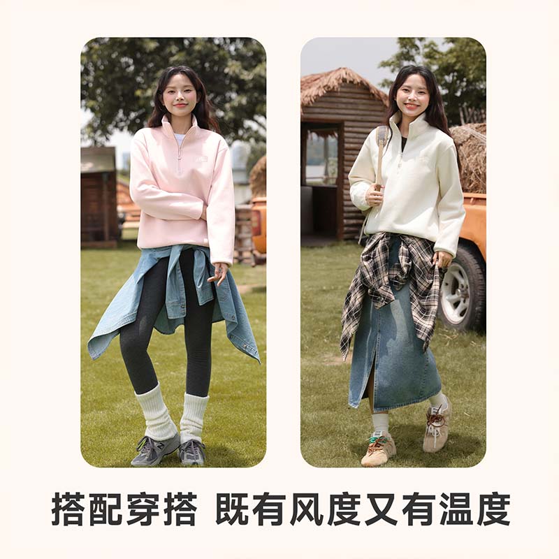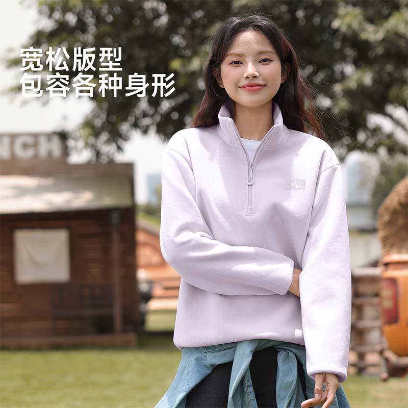 班尼路套头卫衣女宽松慵懒秋冬2025新款 松弛保暖外套摇粒绒上衣M