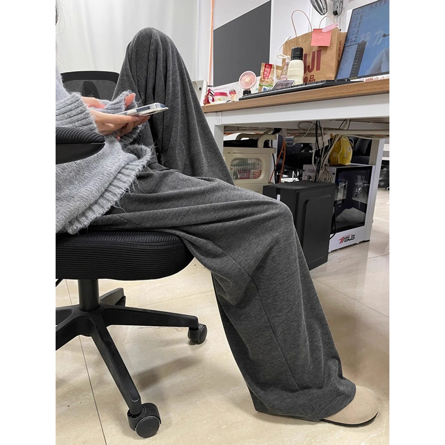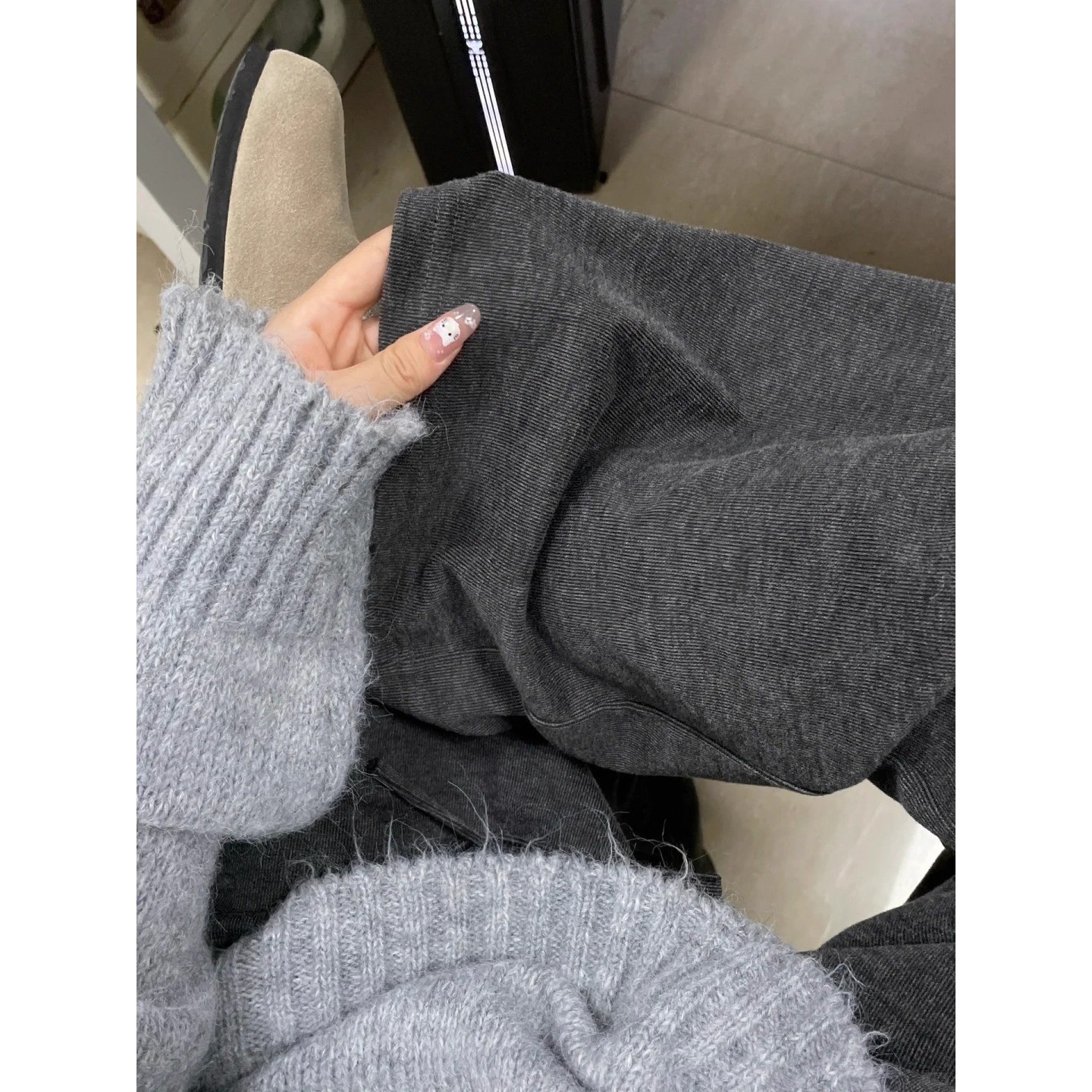 加绒街舞穿搭褶皱宽松休闲长裤 女秋冬季 子 灰色运动卫裤 自然涩美式