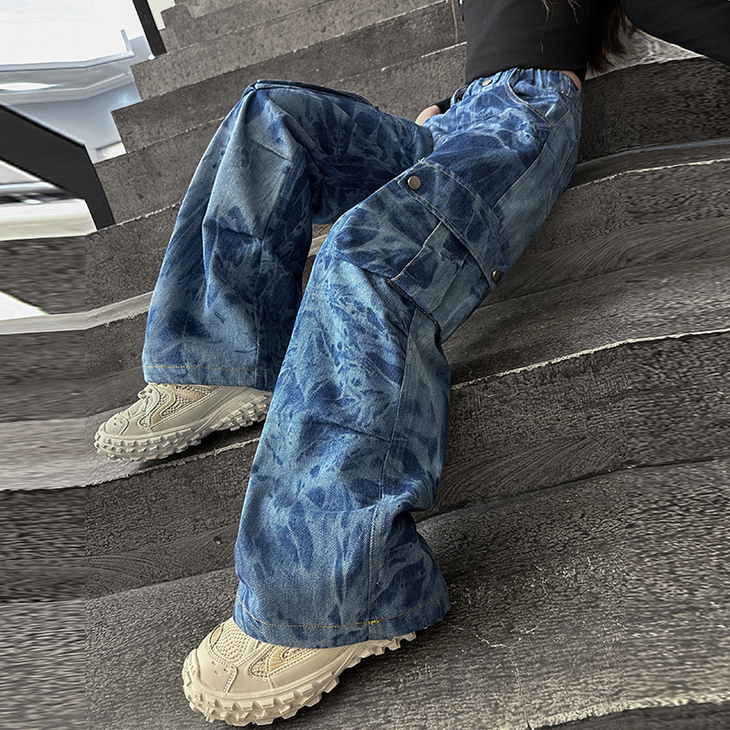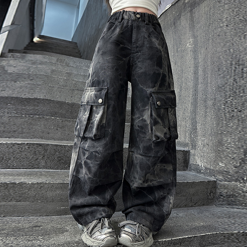 加绒街舞穿搭褶皱宽松休闲长裤 女秋冬季 子 灰色运动卫裤 自然涩美式
