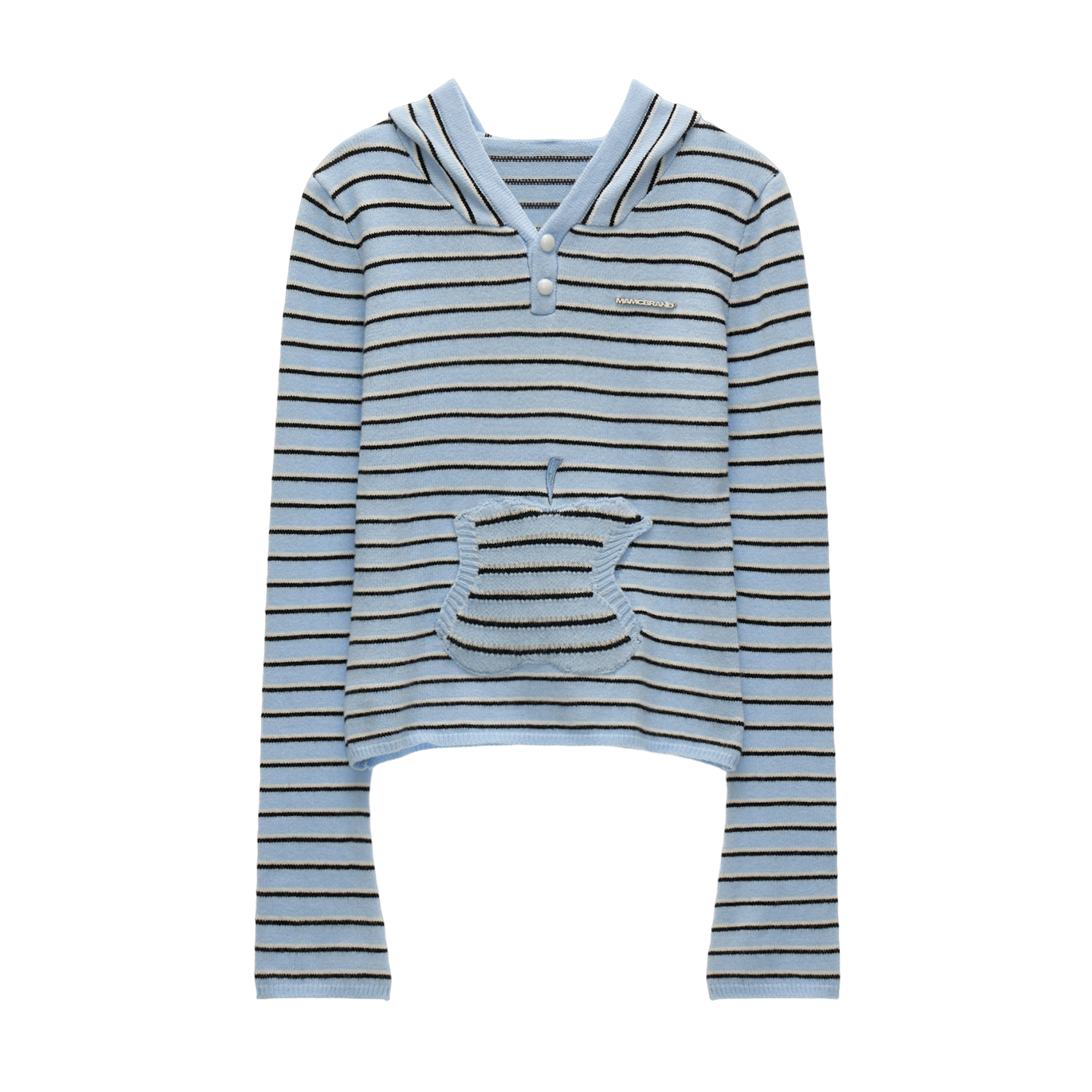 长袖 甜美针织衫 上衣女2025秋季 修身 毛衣 新款 MAMC苹果条纹打底帽衫