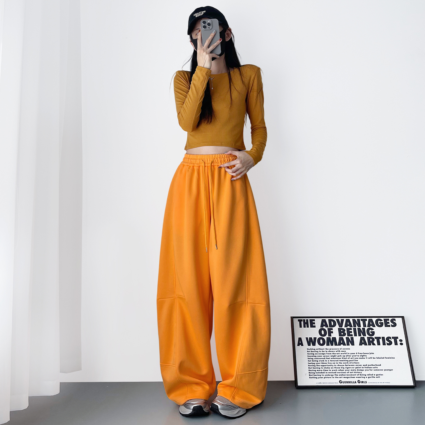 胖mm梨型身材松弛感运动休闲卫裤 女秋季 慵懒风宽松显瘦阔腿裤 大码