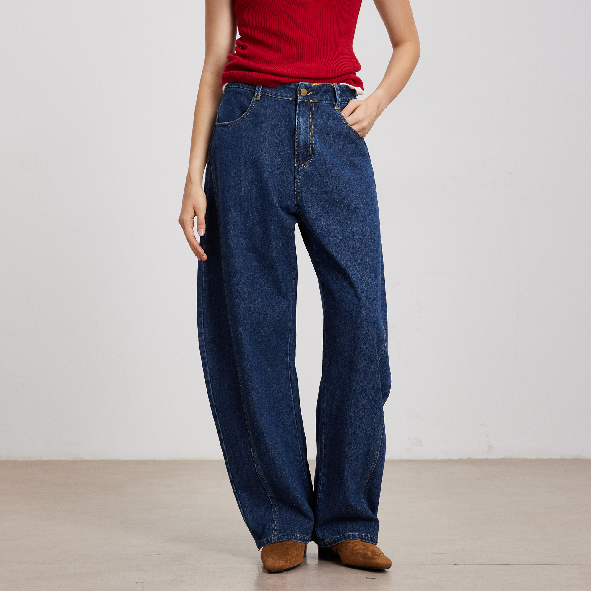 House 宽松阔腿裤 百家好高腰弯刀牛仔裤 新款 子女 女2025秋季 Basic