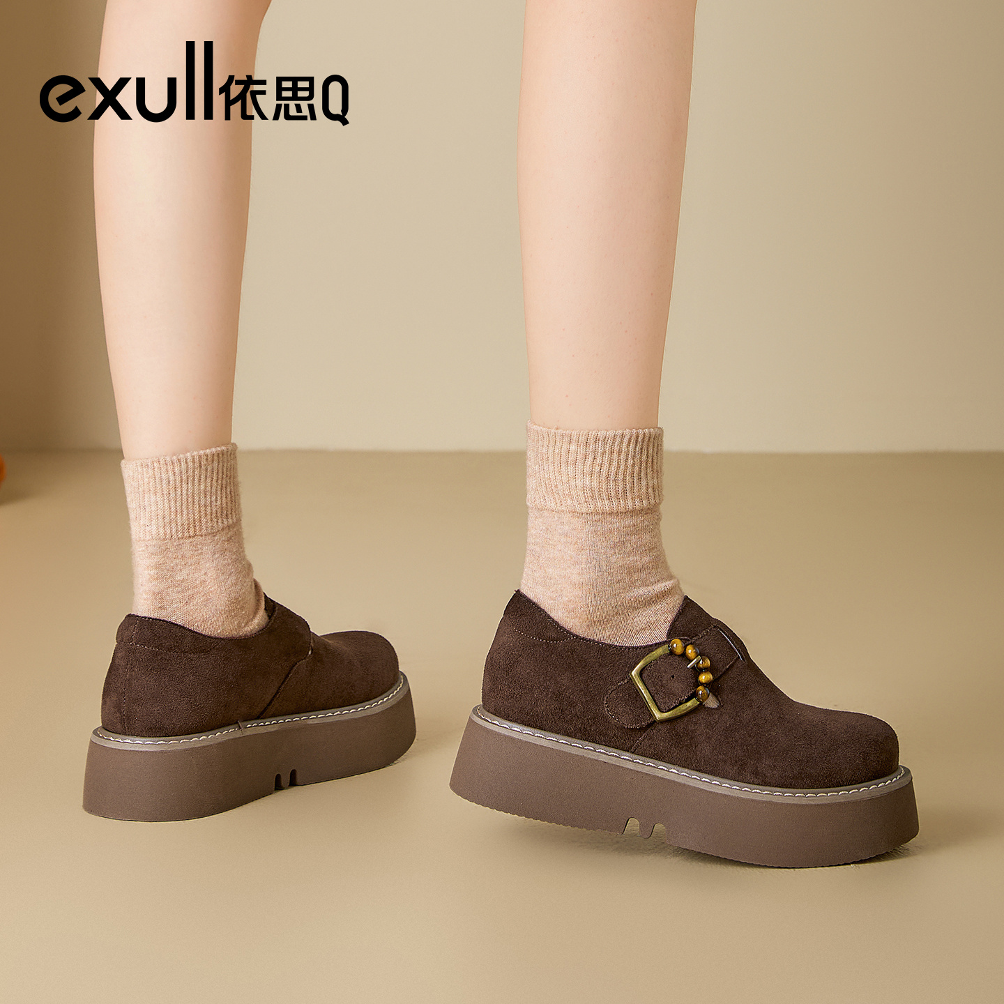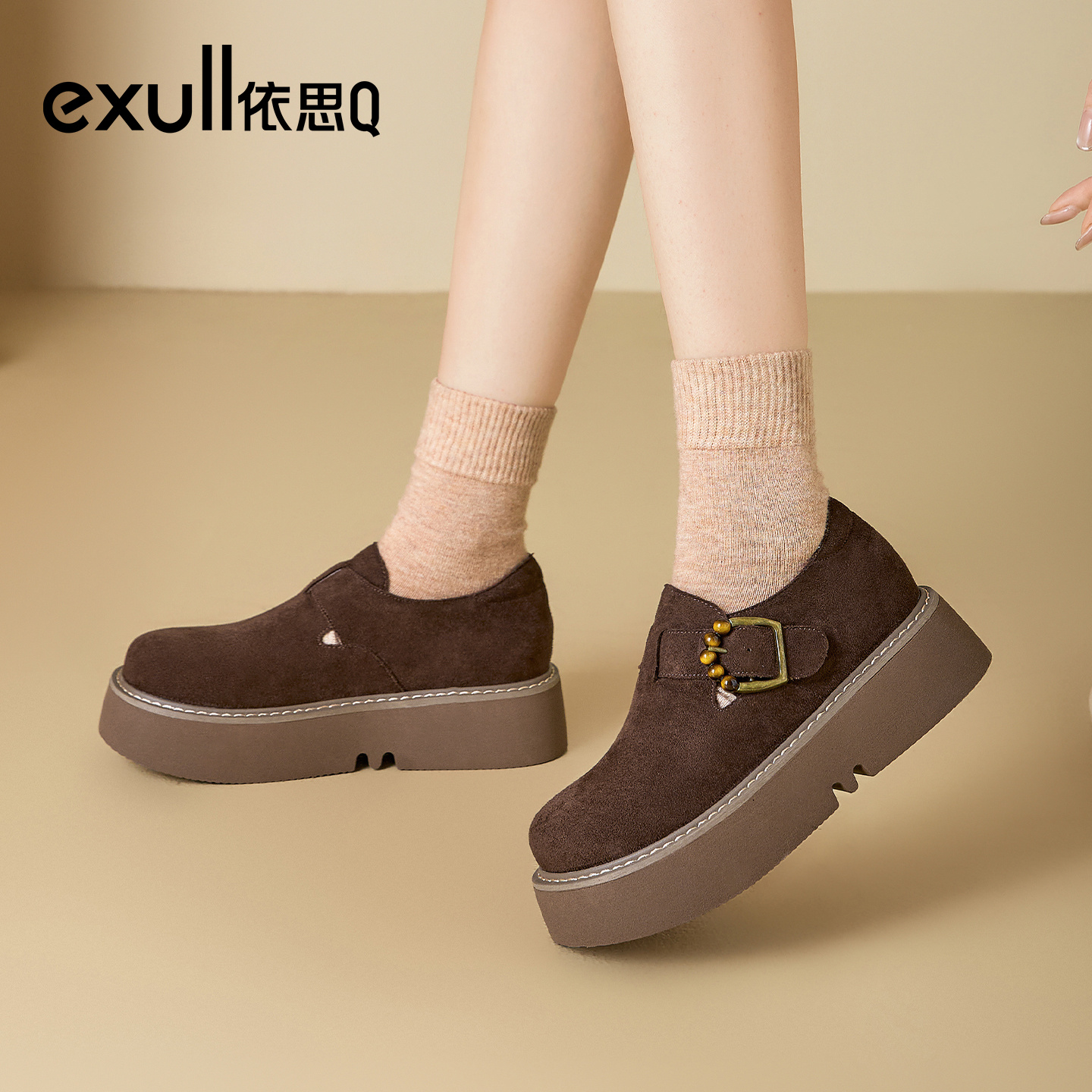 秋季 女2025新款 乐福鞋 增高女鞋 exull 超火勃肯鞋 依思Q厚底单鞋