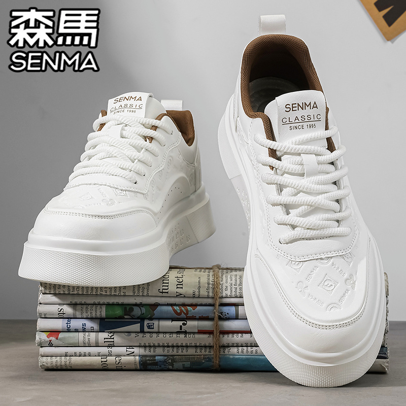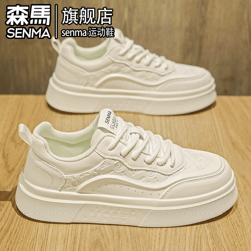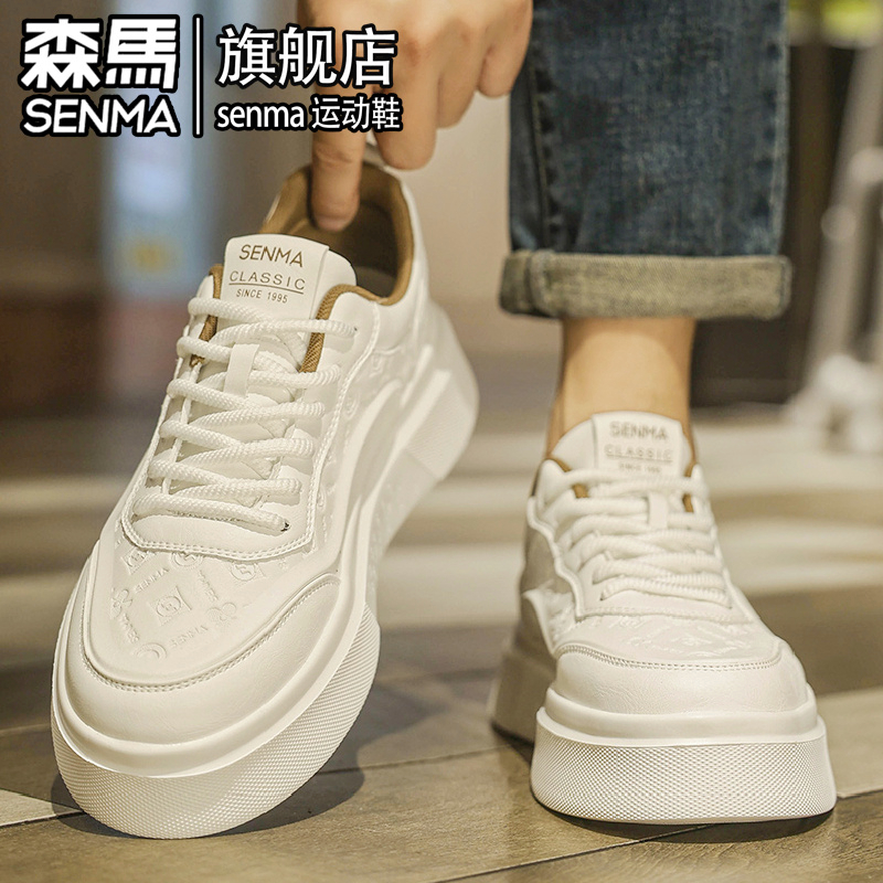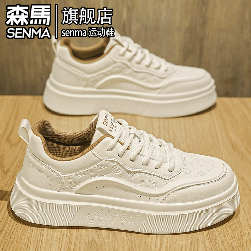 真皮防水软底增高小白鞋 森马男鞋 男士 高级感运动休闲白色板鞋 秋季