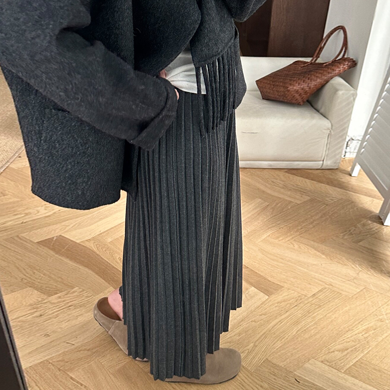 灰色针织百褶裙女春秋2025新款 半身裙 高腰韩系百搭秋冬毛呢中长款