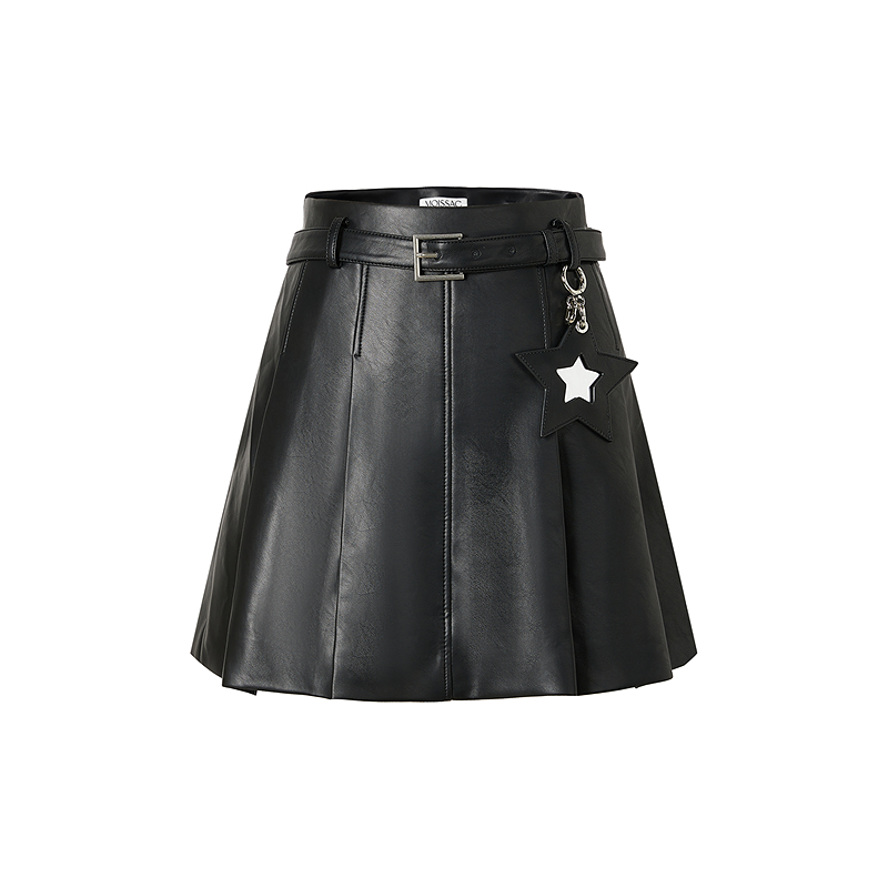 ONLY2025冬季 挺括牛仔面料设计高腰A字百褶裙长裙半身裙女 新款
