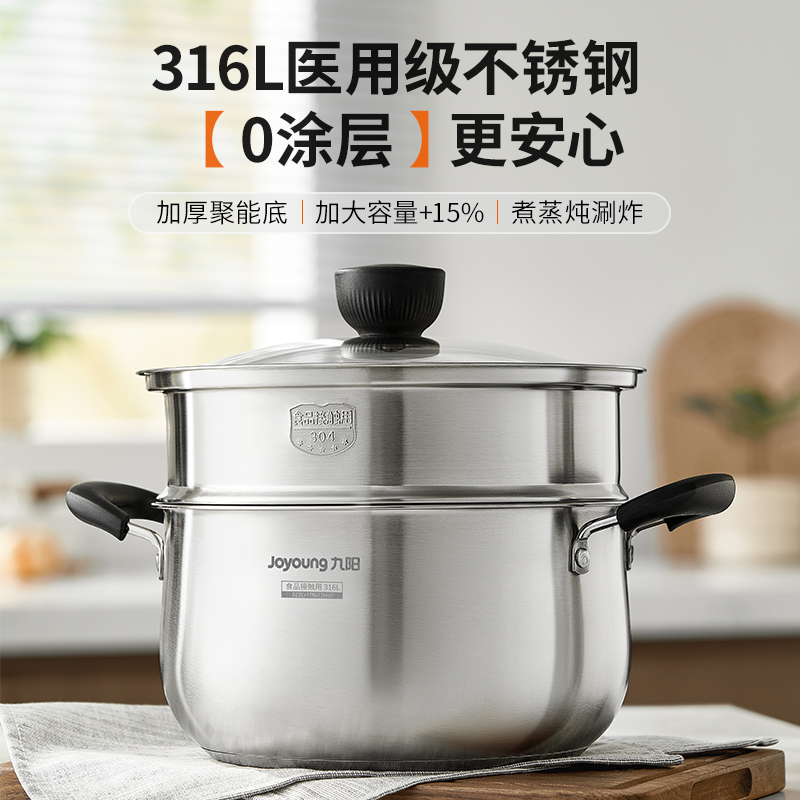 九阳汤锅316L不锈钢加厚家用奶锅煮粥锅炖锅煮锅锅具燃气电磁炉炊