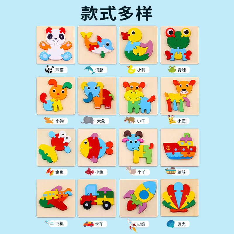 幼儿园早教益智3D木质立体拼图拼板1 3岁男女孩宝宝亲子互动玩具