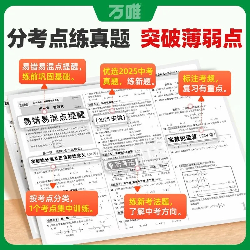 万唯中考真题分类2026版 卷语文数学英语物化生地政历必练中考初二初三试题精选研究八年级九年级专项训练万唯全国通用中考真题汇编