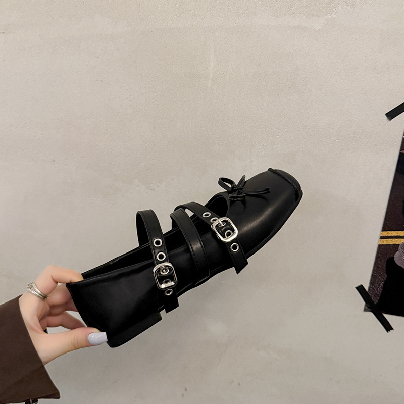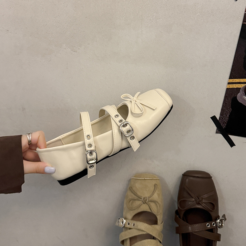 女2025春秋季 芭蕾舞鞋 新款 玛丽珍女鞋 法式 蝴蝶结复古方头浅口单鞋