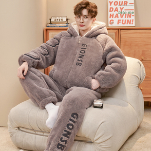 冬款 加厚加绒珊瑚绒保暖男士 青少年家居服冬天可外穿 冬季 睡衣男款