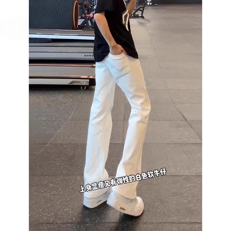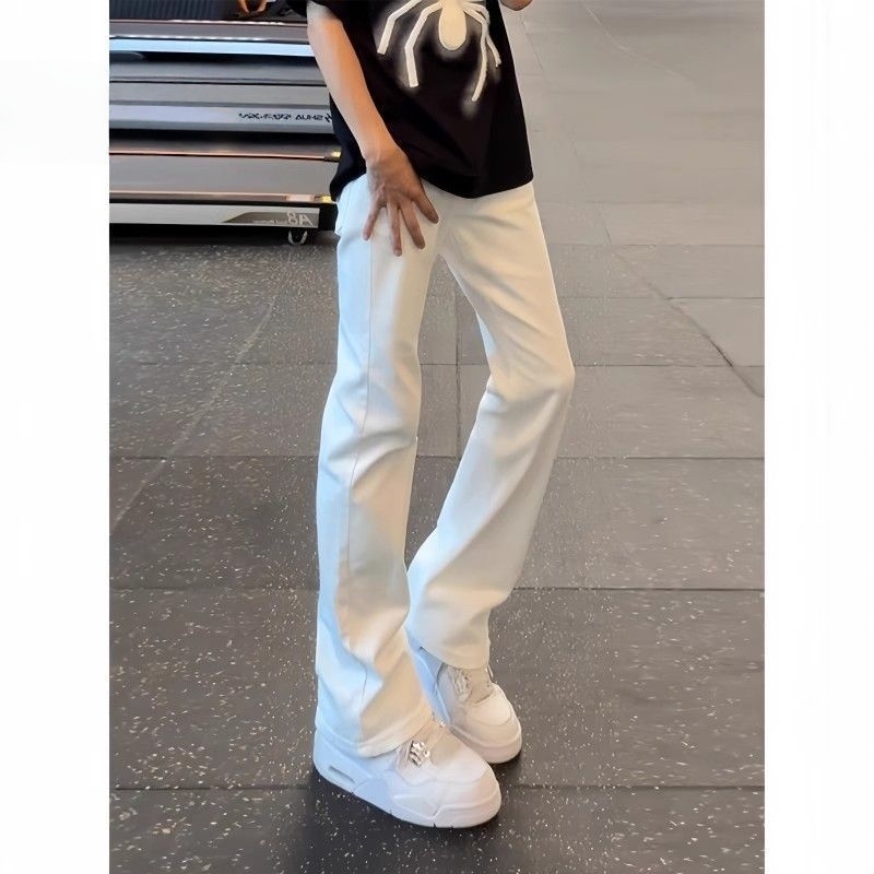 显瘦直筒垂感拖地裤 高腰宽松大码 子 女2025春秋新款 白色牛仔阔腿裤