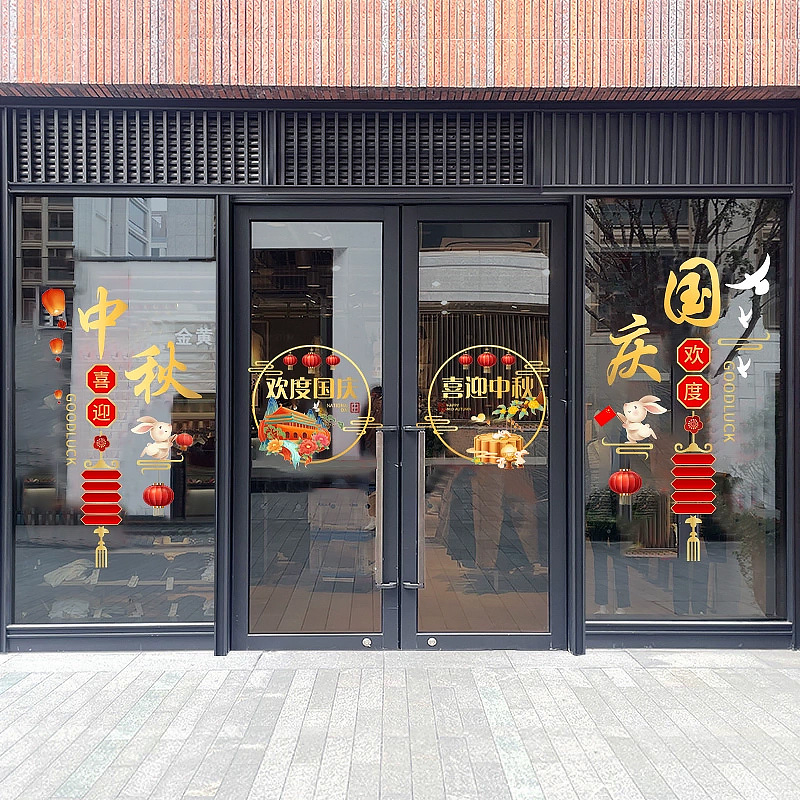 2025中秋国庆节装 静电贴店铺商场玻璃橱窗玻璃门贴氛围窗贴 饰个性