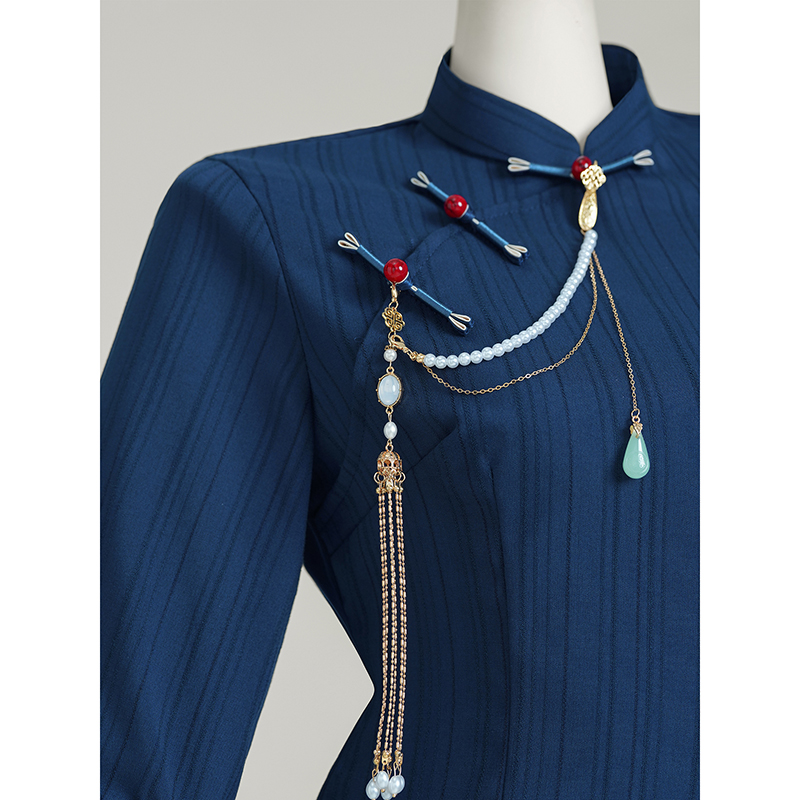 细语岁月 灰色蝴蝶结盘扣旗袍连衣裙开衫 秋季 新中式 女 新款 乔拉