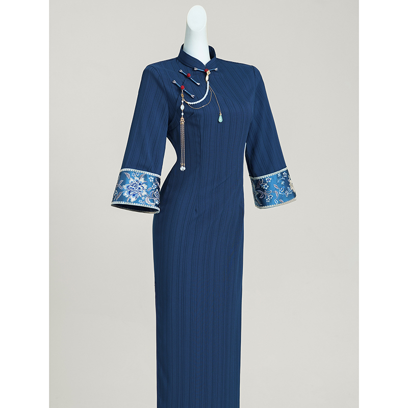 新中式 玲珑丹青 遮肚改良黑色重工鱼尾裙微胖显瘦旗袍 babes