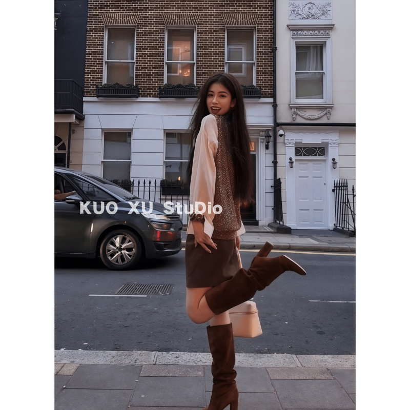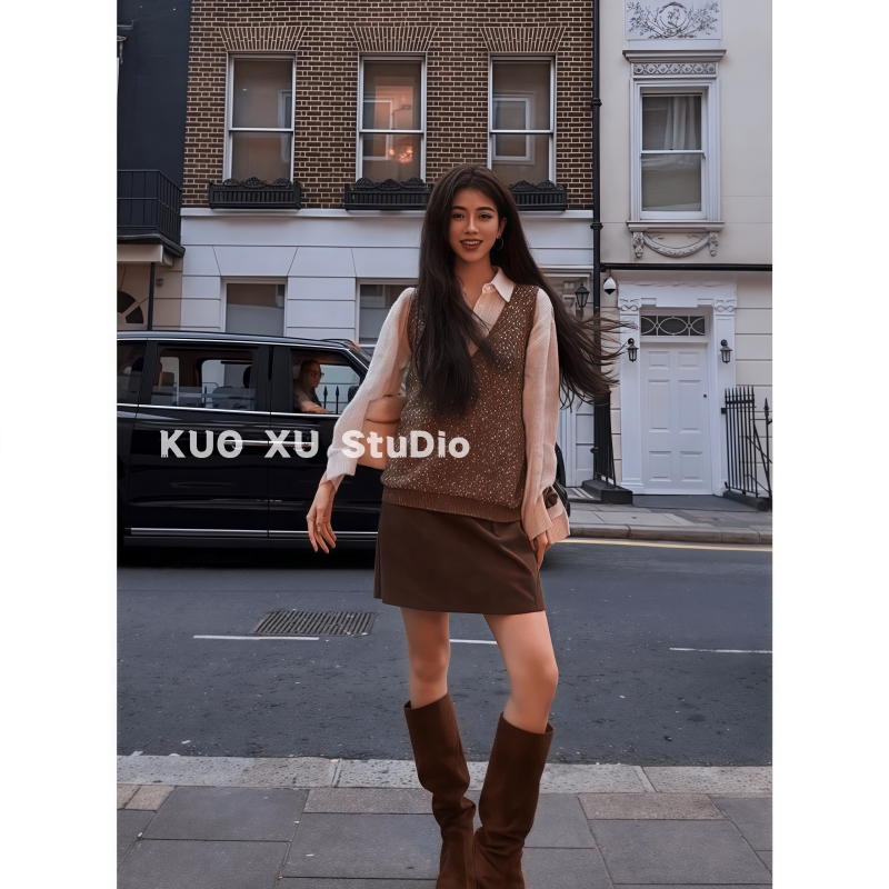 马甲法式 女无袖 毛针织衫 背心长袖 a字半身裙 巨好看 衬衫 早秋套装