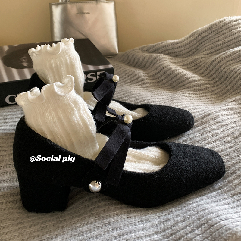 仙女温柔玛丽珍鞋 女2025夏新款 浅口单鞋 内增高蝴蝶结方头芭蕾舞鞋