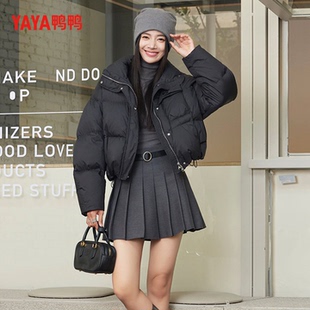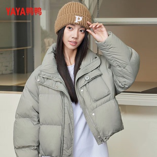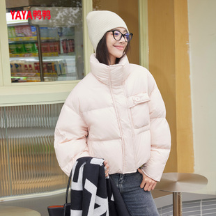 YAYA鸭鸭羽绒服2025秋冬新款 立领轻薄双面穿百搭拼接外套 女士短款