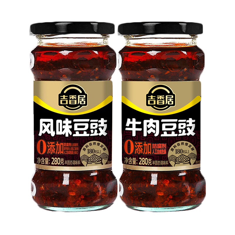 吉香居豆豉280g风味牛肉香辣下饭豆豉酱四川微辣辣椒酱调料拌面