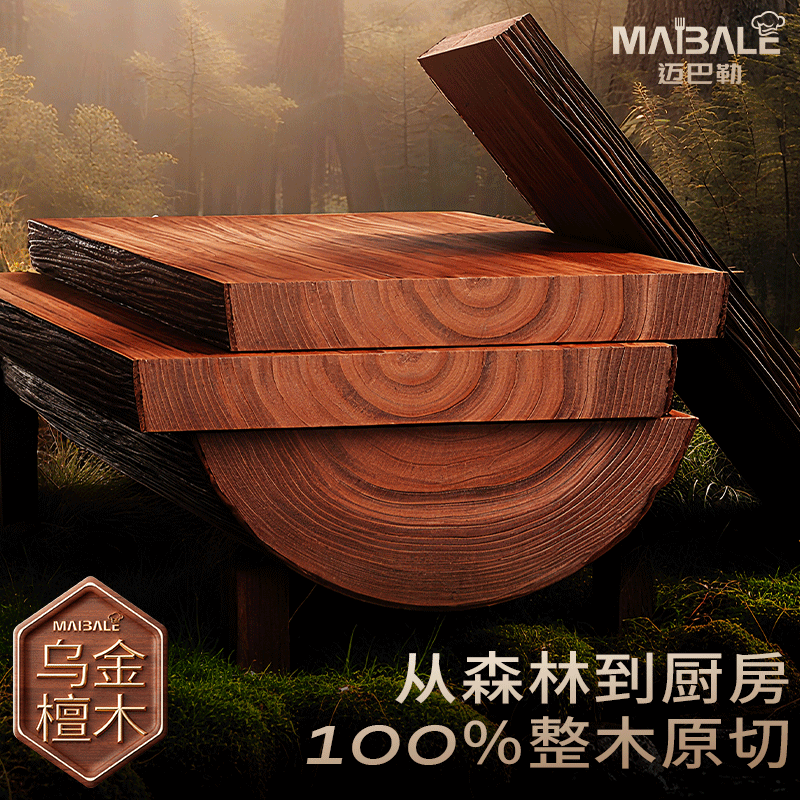 迈巴勒整木乌金檀木切菜案板抗菌防霉家用食品级实木厨房专用粘砧