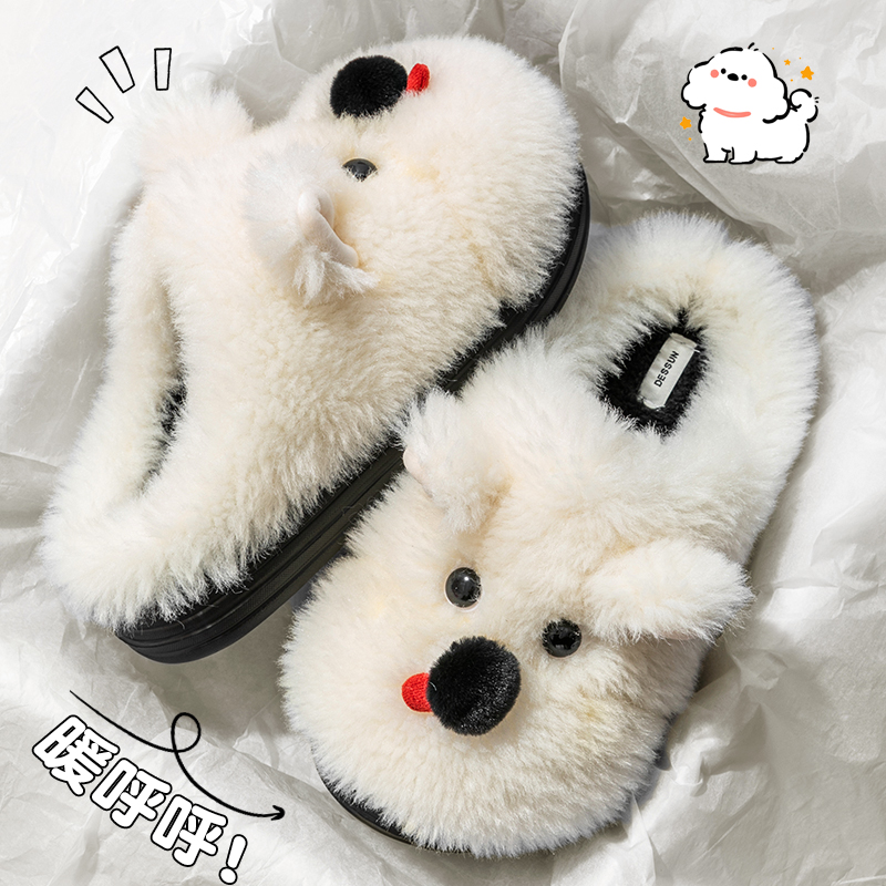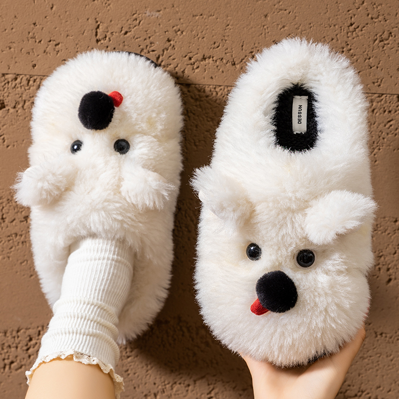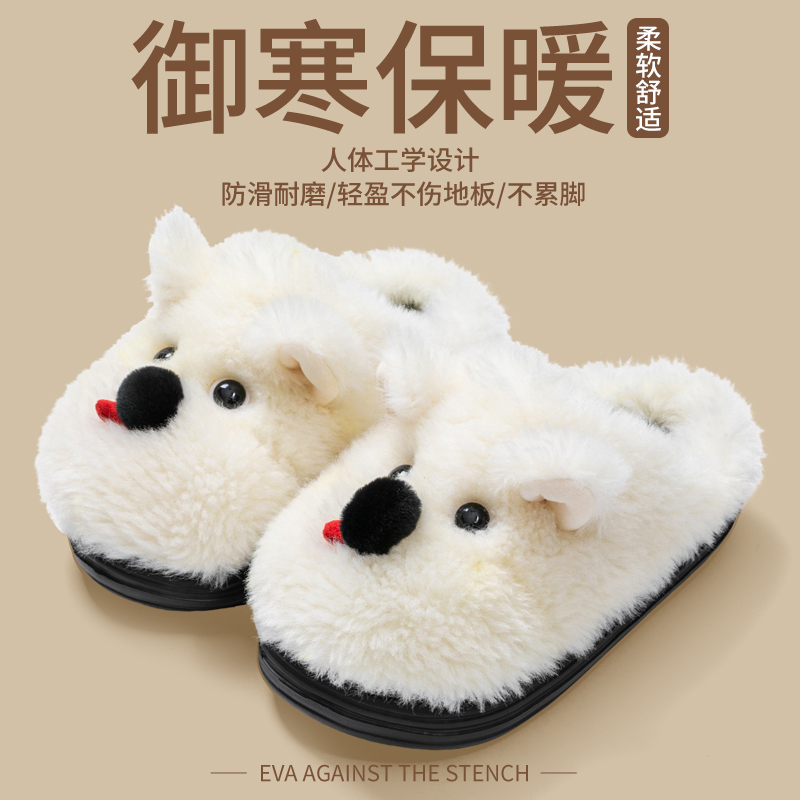 室内家居情侣保暖居家男 秋冬季 毛绒棉拖鞋 女士可爱西高地2025新款
