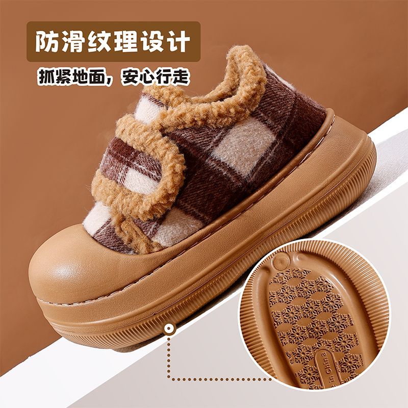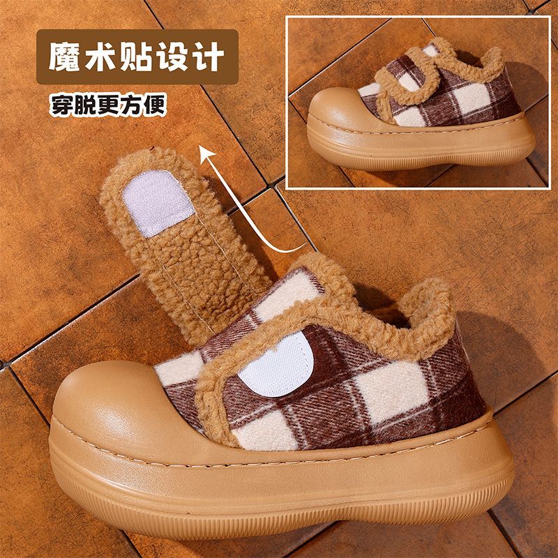子棉拖女款 魔术贴毛毛鞋 毛绒 加绒加厚东北大棉鞋 厚底雪地靴女新款