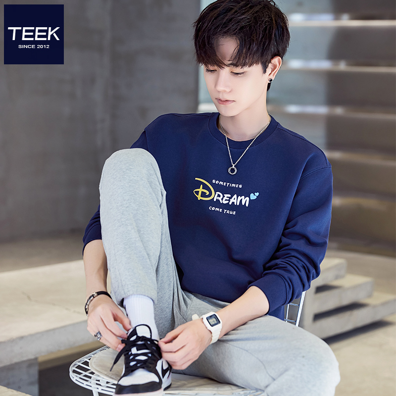 长袖 特步圆领卫衣男2025秋季 上衣宽松运动服正品 休闲男士 T恤 新款