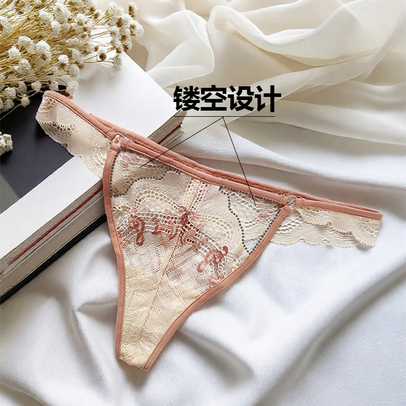T内裤 大码 女舒适纯棉裆裆 透明镂空纯欲风火辣性感薄款 蕾丝丁字裤
