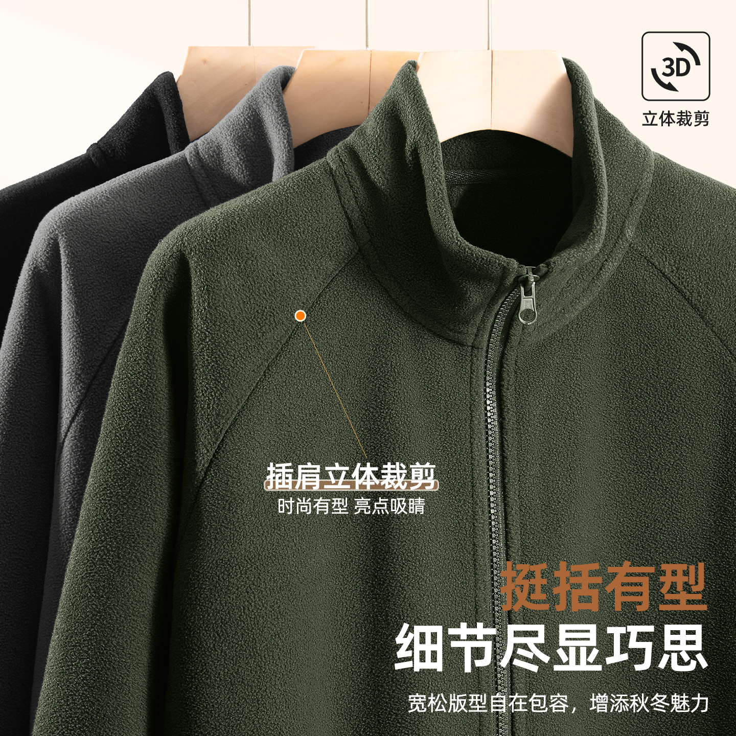 回力摇粒绒外套男款 秋冬抓绒衣防风保暖黑色立领夹克男D 2025新款