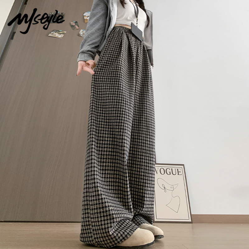 宽松直筒慵懒休闲显瘦垂感阔腿裤 新款 女2025秋季 STYLE格子裤