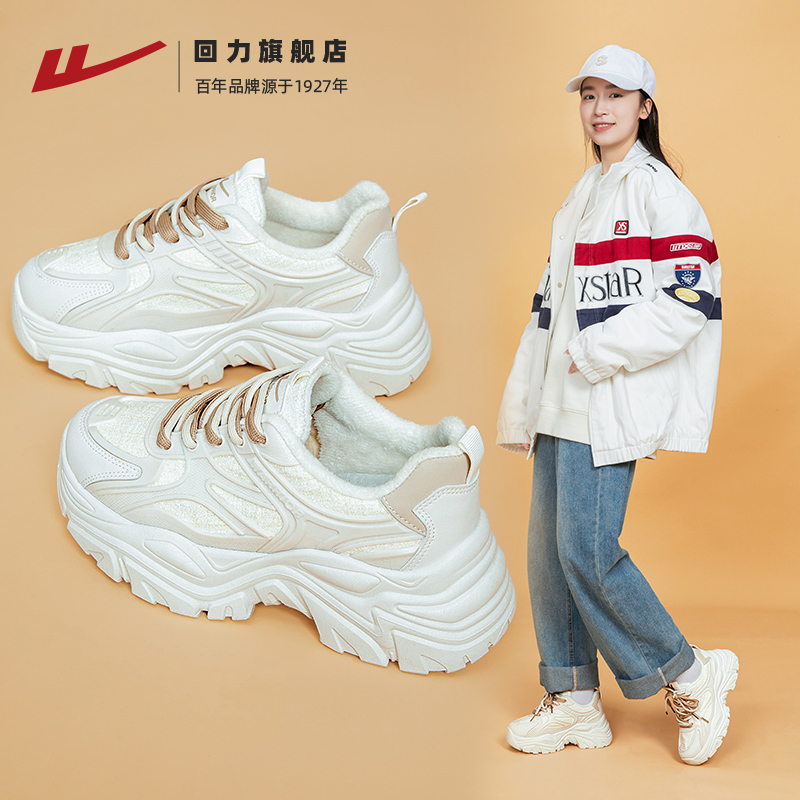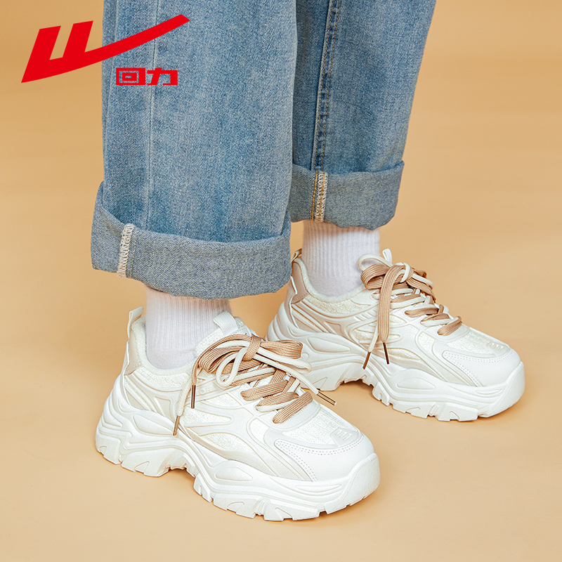 厚底增高老爹鞋 鸿星尔克桀骜3新款 秋冬皮面百搭休闲鞋 女鞋 运动鞋
